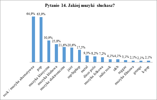 Ostatnie pytanie ankiety dotyczyło preferencji muzycznych ankietowanych.