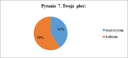 Z odpowiedzi na pytanie 7. wynika że większość, czyli 59% ankietowanych stanowią kobiety, a mniejszą część mężczyźni – 41%.