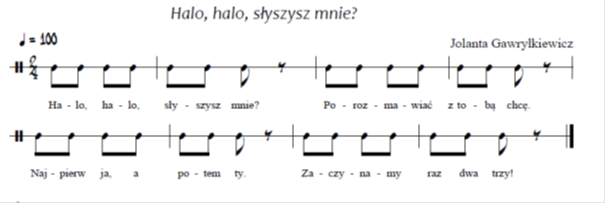 Zaproś uczniów do powtarzania motywów rytmicznych asymilacyjnych.