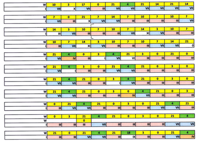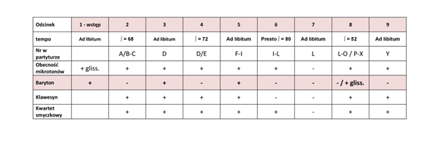 Po przeprowadzeniu szczegółowej analizy strukturalnej wypracowanego systemu obliczeń i oznaczeń graficznych stwierdzić można konsekwencję w zakresie wykorzystania poszczególnych transpozycji skali, co bezpośrednio wpływa na składnię i dramaturgię utworu.
