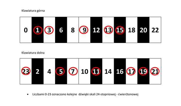 Rys. 1. Przestrojenie klawiatur klawesynu w Klave Pawła Mykietyna