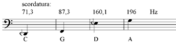 W Sonacie wiolonczela została również przestrojona – kompozytor podaje częstotliwości dla poszczególnych strun.