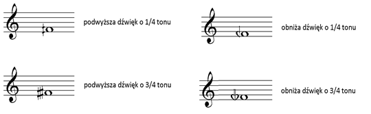 Rys. 3. Notacja ćwierćtonów w utworach Pawła Mykietyna