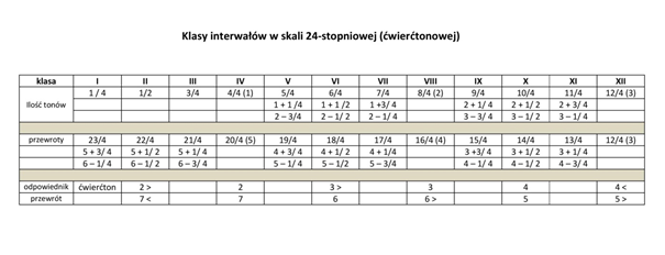 Rys. 4. Tabela klas interwałów w skali ćwierćtonowej 24-stopniowej