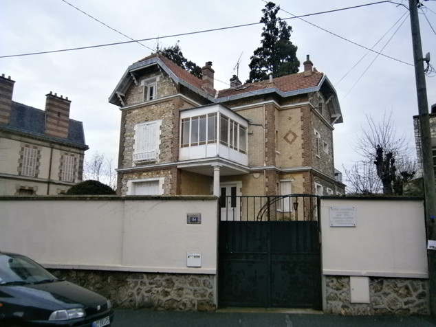 Dom Wandy Landowskiej w Saint-Leu-la-Fôret. Widok z ulicy. Po prawej stronie wejścia tablica pamiątkowa. Fotografia autora.