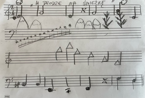 Przypatrzmy się poniższym rysunkom oraz zapisom nutowym i opisom nadanym im przez autorów: