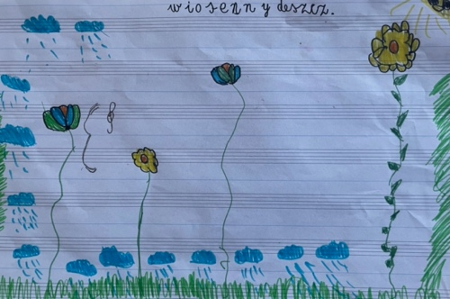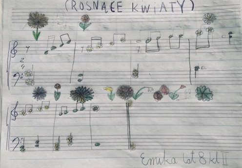 Wyobrażam sobie, jak kwiatuszki rozwijają się w stronę słońca, rozchylają swoje listki i płatki, wznoszą się, dlatego moje nutki rosną – kwiatki na pięciolinii też idą sobie do góry.