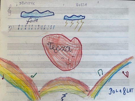 – A ja lubię burzę! I takie wielkie krople deszczu, co szybko lecą z nieba! – zawołała Pola tłukąc w klawiaturę fortepianu. Sama aż rwie się do grania i tworzy utworki, grając je praktycznie na każdej lekcji. – Wymyśliłam dziś utwór o tęczy! Mogę Pani zagrać? – pyta mnie z radosnymi oczkami. Jej dziecięca radość w tworzeniu i niesamowita wyobraźnia inspirują mnie do rozwijania różnorodnych tematów o przyrodzie, zwierzętach, naturze. Próbujemy to wszystko odzwierciedlić dźwiękami, dynamiką. Pola skomponowała już kilkanaście utworów w pierwszym roku nauki gry na fortepianie. Jest już małą kompozytorką, nieświadomą na razie swojego potencjału, który w niej drzemie. Nieczęsto mam do czynienia z tak uzdolnionymi dziećmi.