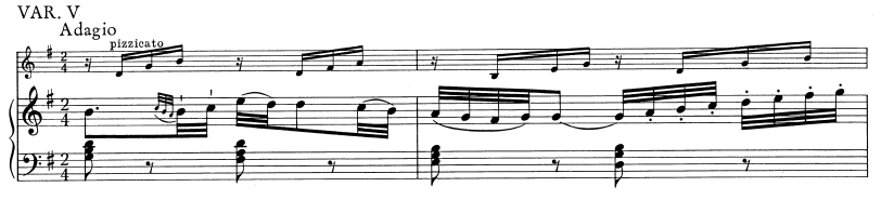 Na podstawie powyższego fragmentu sonaty Wolfganga Amadeusza Mozarta spróbujmy sobie wyobrazić jego wykonanie przez skrzypce oraz lewą rękę pianisty. Jeśli uzyskamy stabilną strukturę, która będzie posiadała własne frazowanie (do końca taktu), brak niewskazanych przez kompozytora dodatkowych punktów oparcia czy niepotrzebnych zawirowań rytmicznych, otrzymamy doskonałą podstawę do prowadzenia melodii poprzez prawą rękę pianisty. Przykładowo: oczywistym wtedy jest fakt, iż w pierwszym takcie d2 w prawej ręce nie będzie rytmicznie razem z akompaniamentem i mając to na uwadze dajemy soliście nieograniczone możliwości wykonawcze.