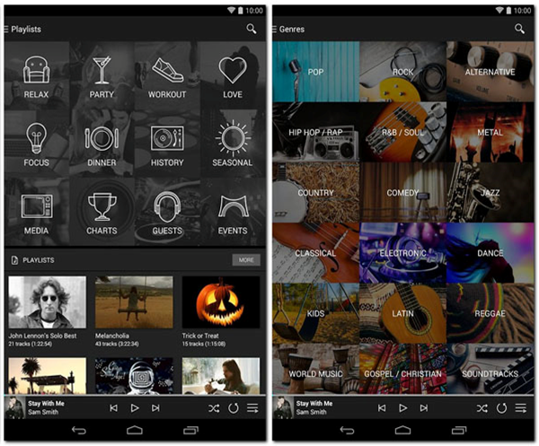 Playlisty odnoszące się do konkretnych nastrojów obok gatunków muzycznych w aplikacji Tidal
